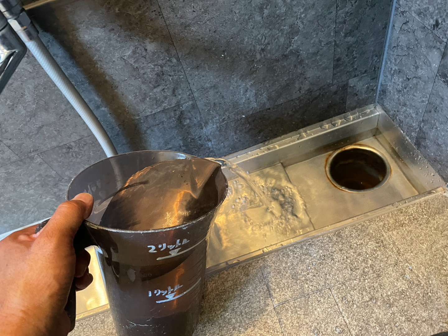 まず20リットルのタンクの水を入れました。その後2リットルづつ入れ35リットルで満水状態になり、水漏れが始まりました。