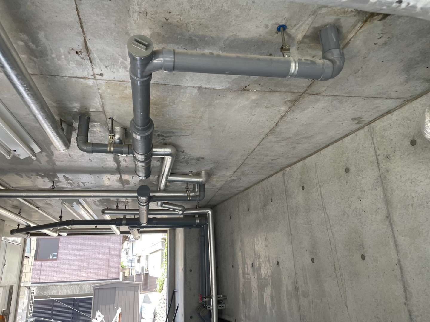 風呂・洗面・手洗い・洗濯・トイレの系統を分け、部分的に配管を閉塞し、そして配管内を満水状態に。
