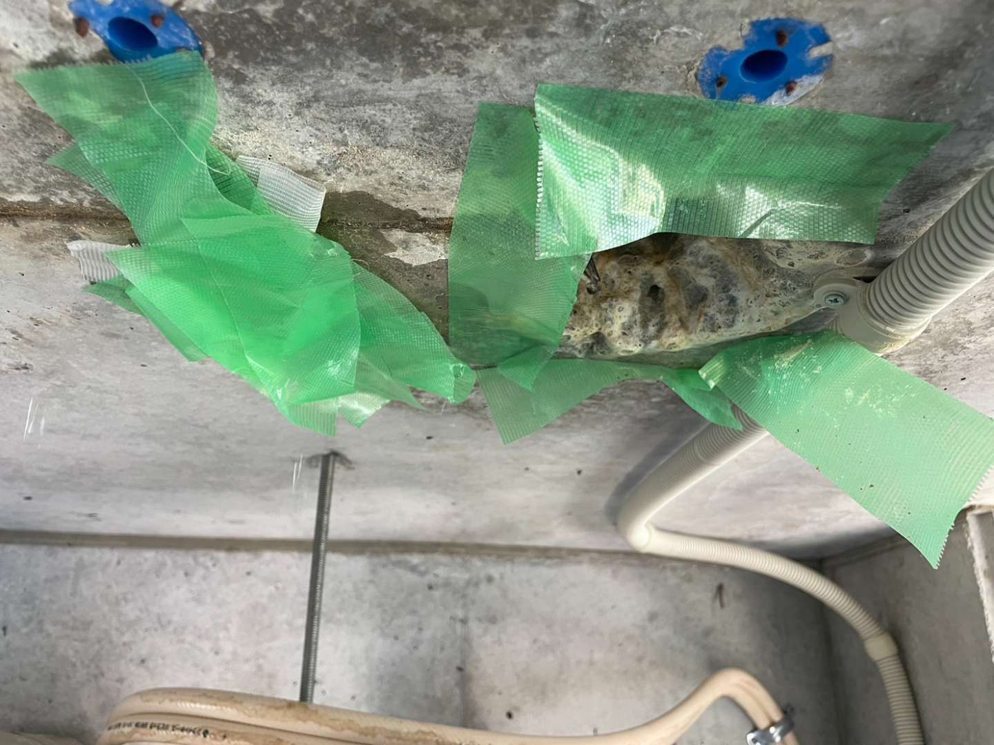水漏れしてる上部は風呂場でしたので排水配管内の【満水テスト】を提案しました。