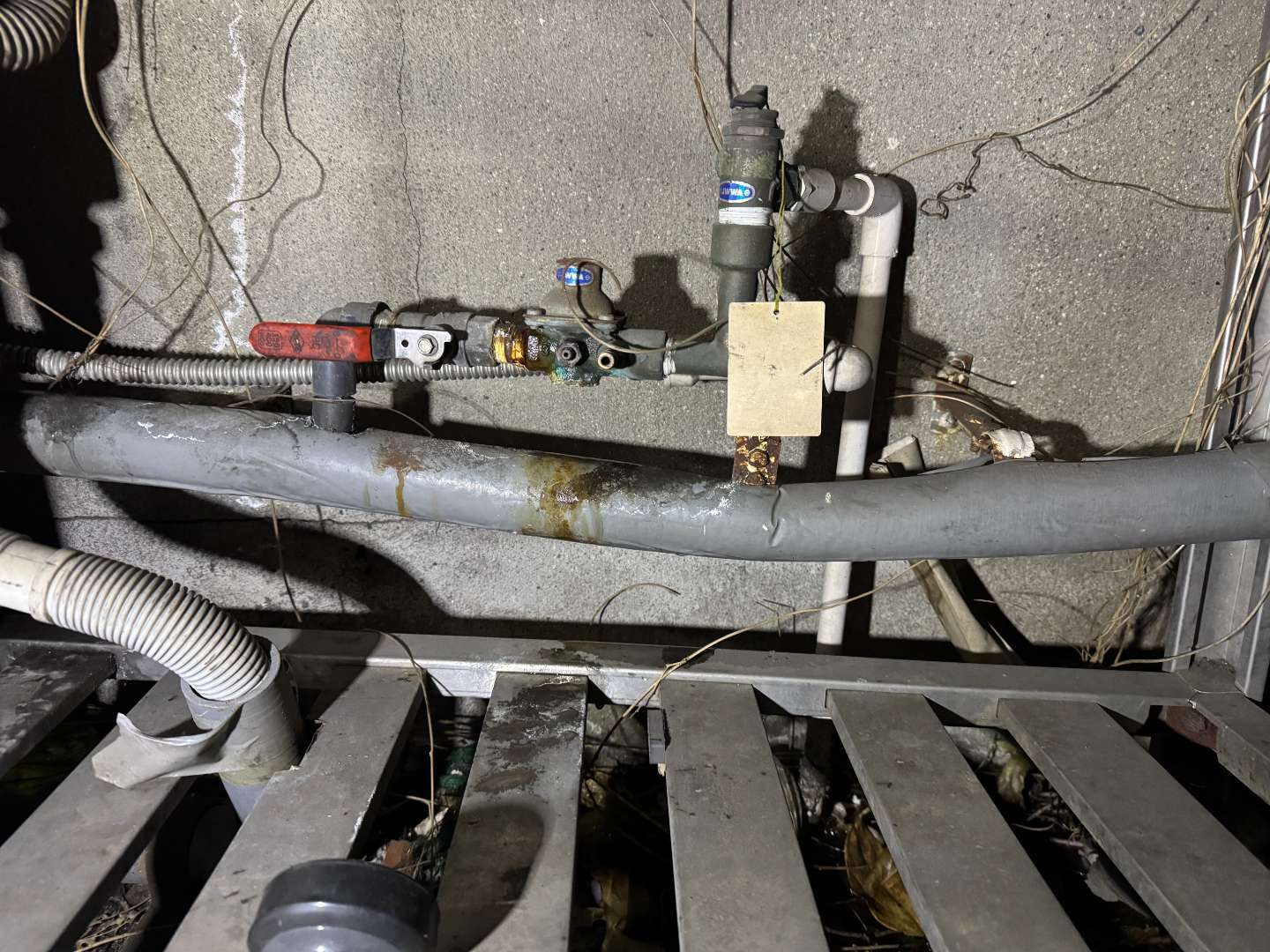 静まり返った夜間、本格的な調査を開始。まず、敷地外部に設置された**「ある器具」からの水漏れ**を発見しました。しかし、長年の経験から、これだけで水道料金の急増全てを説明できるほどの量ではないと直感。この漏水を一時的に止め、さらに奥深くへと調査を進めました。